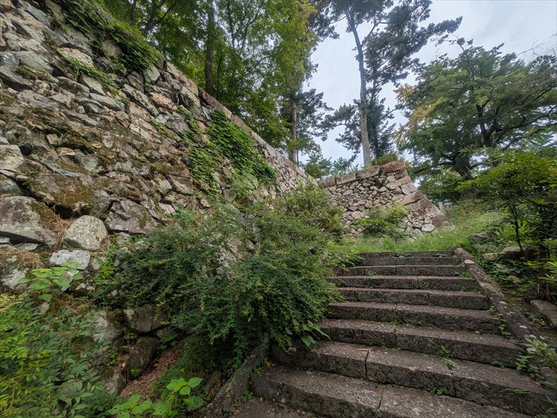 現在、城跡は宗教法人・大本の敷地内にあり、一般公開されている部分は限られていますが、それでも石垣や堀がしっかりと残されており、戦国から江戸初期にかけての面影を十分に感じ取ることができます。特に穴太衆の技法による石垣は、力強さと美しさを兼ね備え、当時の築城技術の高さを実感させてくれます。