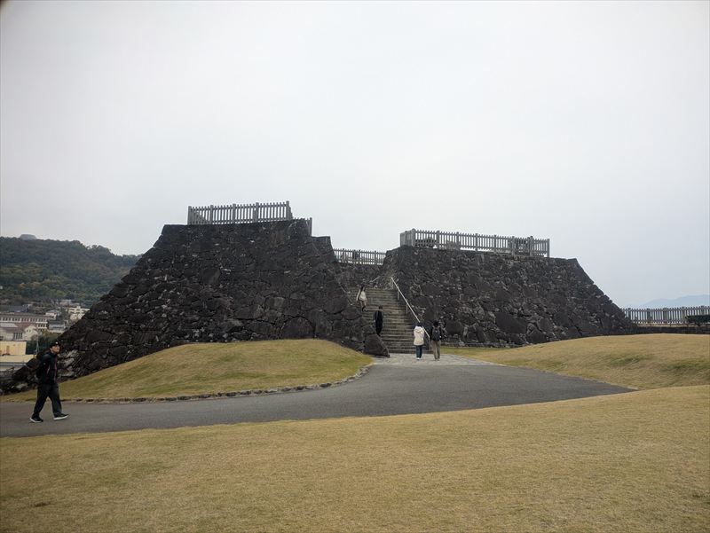 現存建築こそ残らないものの、石垣の量感と高さは圧倒的。