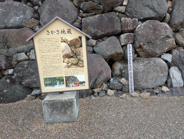 天守台石垣に組み込まれた**「さかさ地蔵」**である。