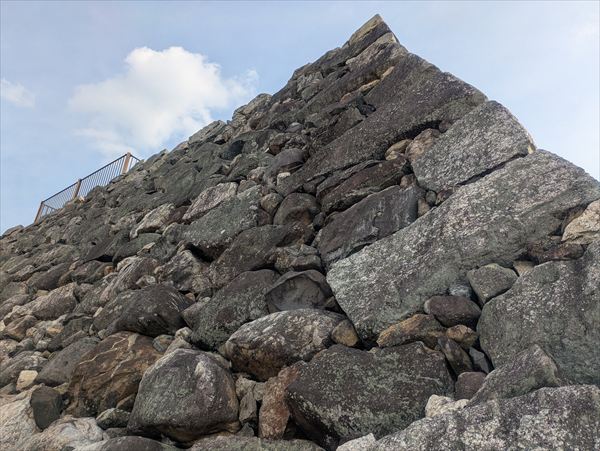 天守台に立ち、さかさ地蔵の石を見上げると、